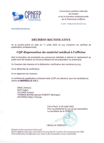 100 % DE RÉUSSITE CQP DISPENSATION DU MATÉRIEL MÉDICAL A L'OFFICINE